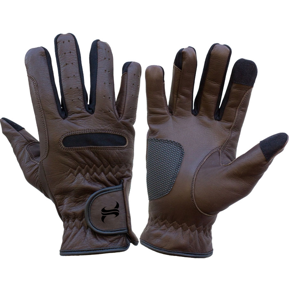 These touch screen horse riding gloves bring you the ultimate in 'feel' on your reins. With our flexible grip they provide the best second skin feedback you could ask for. Chic design, coupled with forefinger & thumb conductive fabric for smartphone use. Classic look in a traditional hard wearing, but soft and comfy leather coupled with a robust modern technical fabric to improve comfort and robustness. All closed up with a Velcro strap.